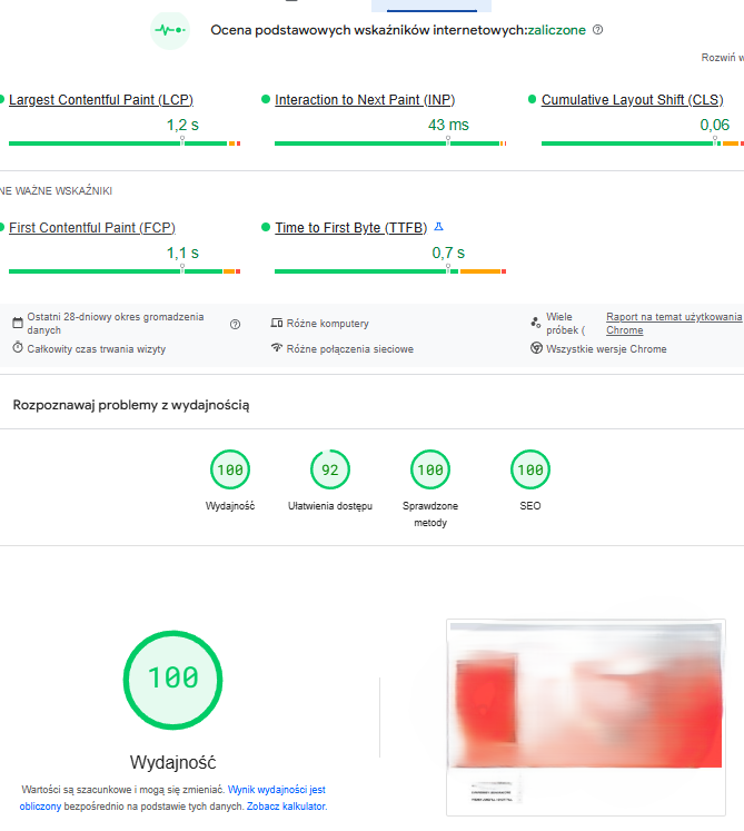Korzystamy z PageSpeed Insights, GTmetrix i Lighthouse, aby dokładnie zbadać i poprawić działanie strony.