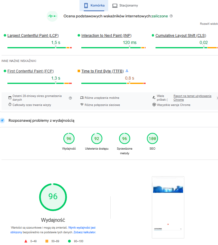 Sprawdzamy efekty naszej pracy i dostarczamy szczegółowy raport z wynikami przed i po optymalizacji.